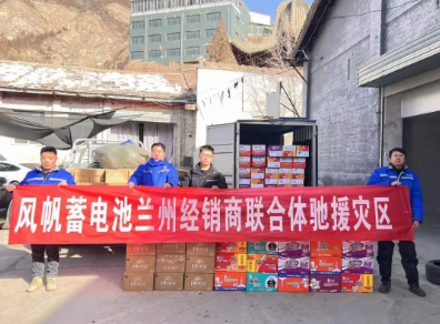 12月21日,風帆公司聯(lián)合甘肅蓄電池經(jīng)銷商為地震災(zāi)區(qū)臨時救助點提供了飲用水、方便面、棉衣生活物資,支援抗震救災(zāi)工作。